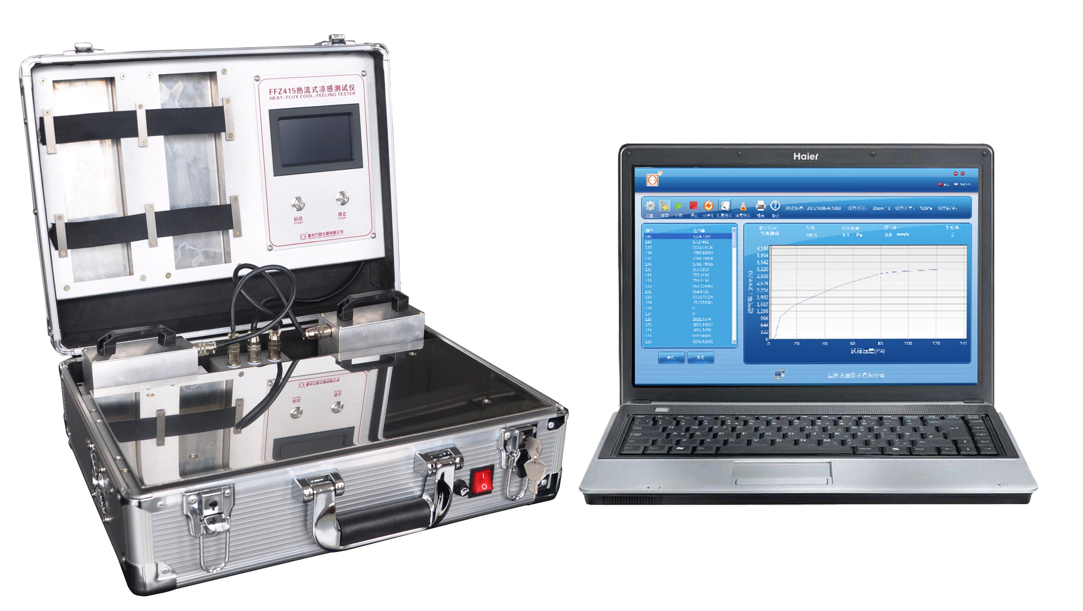 涼感制品越來越多,其質(zhì)量檢測刻不容緩。我公司根據(jù)CN201510574661.X-熱流式織物涼感測試設(shè)備及測試方法,自主研發(fā)的FFZ415熱流式?jīng)龈袦y試儀,可對織物接觸瞬間涼感Qmax值進行測試,又可對織物持續(xù)散熱值進行測量。反映各類涼感材料綜合的散熱性能